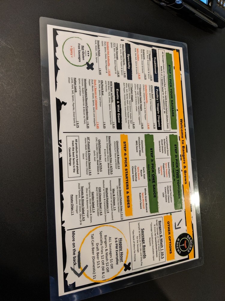 “ Nice selection of bangers! I had the elk/pork sausage with mashed potatoes, caramelized onions and gravy. We had the mac and cheese on the side. They brought out bread and chimichurri sauce as a free app. They also had Pliny the Elder on tap which was a nice surprise. Staff is super helpful and friendly ”