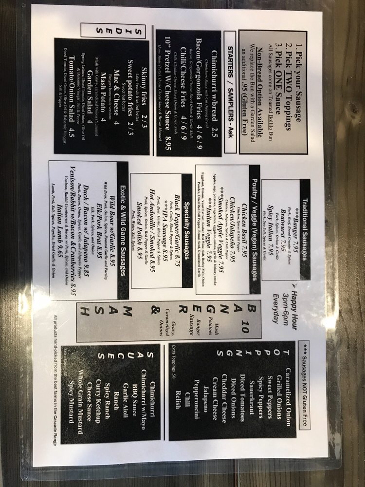 “ This place has everything! Great food, excellent beer and amazing service. I was in Eugene for a couple nights and this place was recommended to me so I checked it out. I ended up loving it so much I went back the next day too!! The sausages were amazing and the staff was super nice and helpful with recommendations. Don't sleep on their sauces either, they're top notch. There's a great atmosphere here with plenty of seating and the openness of the restaurant helps to create a sense of unity with your fellow diners. They've even got some TVs to watch games on, what more could you ask for?!?! Parking is also super easy, so that's always a plus for me. ”